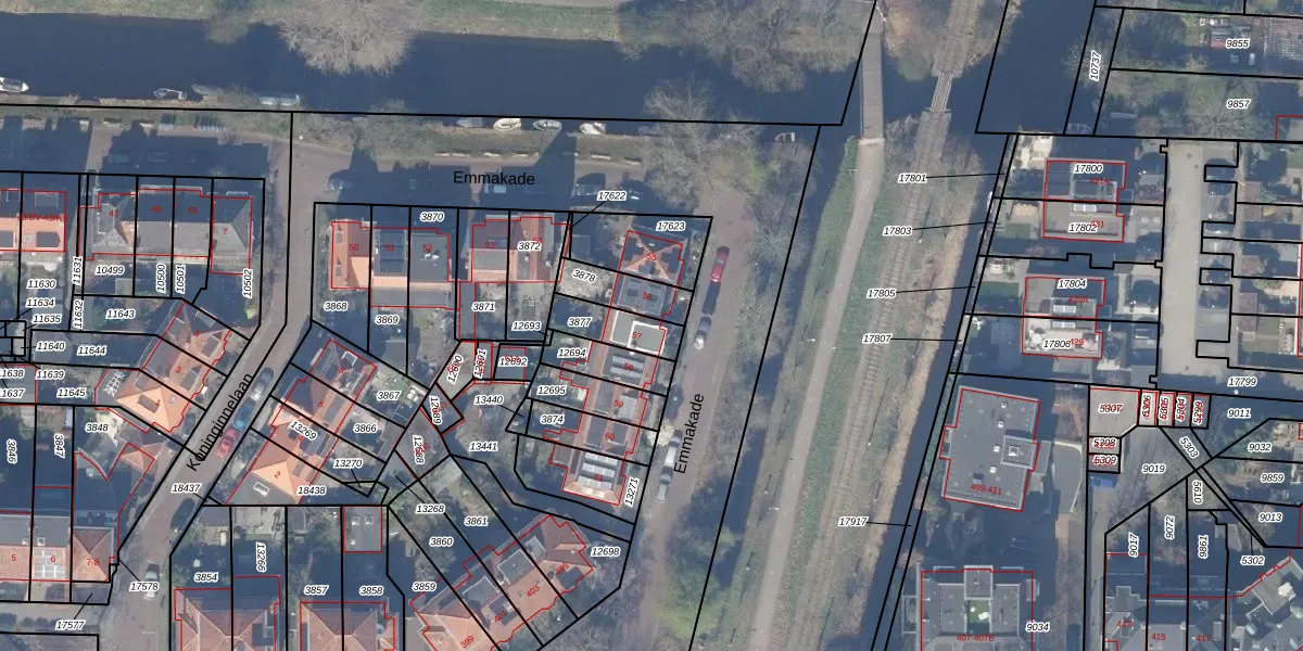 Het perceel waarop Emmakade 57 staat heeft een oppervlakte van 113 m². Dit is een middelgroot perceel. De perceeloppervlakte wordt geregistreerd door het Kadaster. Gedetailleerde informatie over de maten van dit perceel kunt u vinden in het rapport Kadastrale kaart met maatvoering van Emmakade 57.