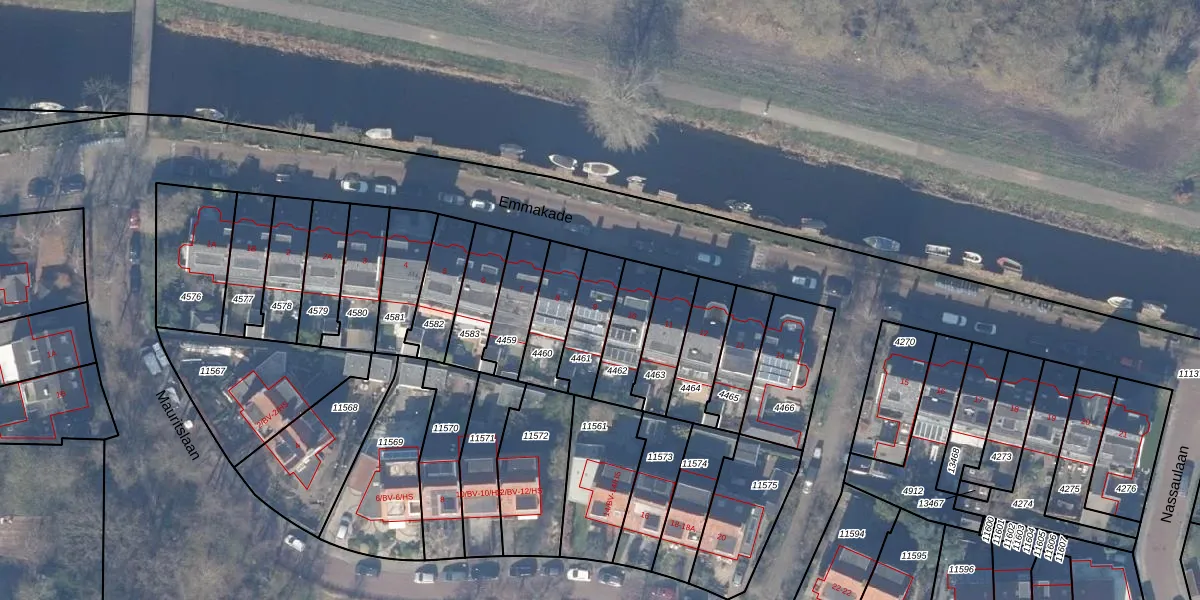 Emmakade 9 is gelegen op kadastraal perceel ASV00H4461. Deze kadastrale aanduiding is uniek en wordt gebruikt door het Kadaster om eigendomsrechten en andere zakelijke rechten vast te leggen. Het perceel maakt onderdeel uit van de kadastrale gemeente Amstelveen.