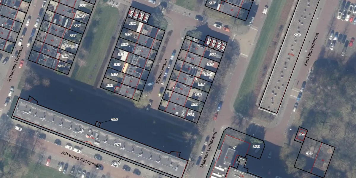 Erasmuslaan 19 is gelegen op kadastraal perceel ASV00M2226. Deze kadastrale aanduiding is uniek en wordt gebruikt door het Kadaster om eigendomsrechten en andere zakelijke rechten vast te leggen. Het perceel maakt onderdeel uit van de kadastrale gemeente Amstelveen.