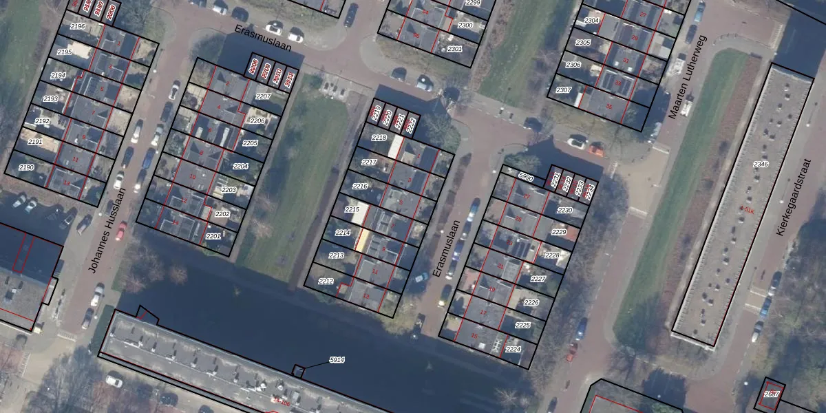 Het perceel waarop Erasmuslaan 5 staat heeft een oppervlakte van 138 m². Dit is een middelgroot perceel. De perceeloppervlakte wordt geregistreerd door het Kadaster. Gedetailleerde informatie over de maten van dit perceel kunt u vinden in het rapport Kadastrale kaart met maatvoering van Erasmuslaan 5.