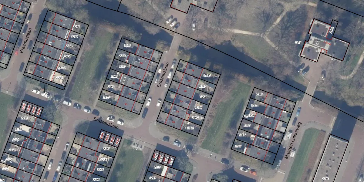 Erasmuslaan 90 is gelegen op kadastraal perceel ASV00M2298. Deze kadastrale aanduiding is uniek en wordt gebruikt door het Kadaster om eigendomsrechten en andere zakelijke rechten vast te leggen. Het perceel maakt onderdeel uit van de kadastrale gemeente Amstelveen.