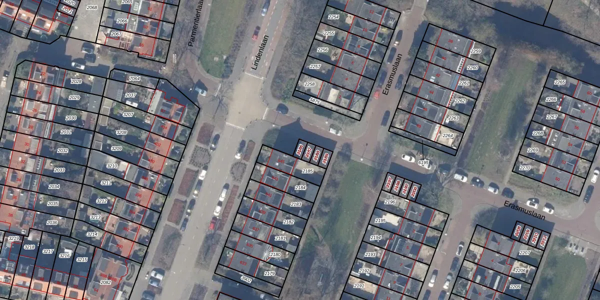 Gebruik de zoekbalk of klik op een perceel voor informatie over de adressen binnen dit perceel.