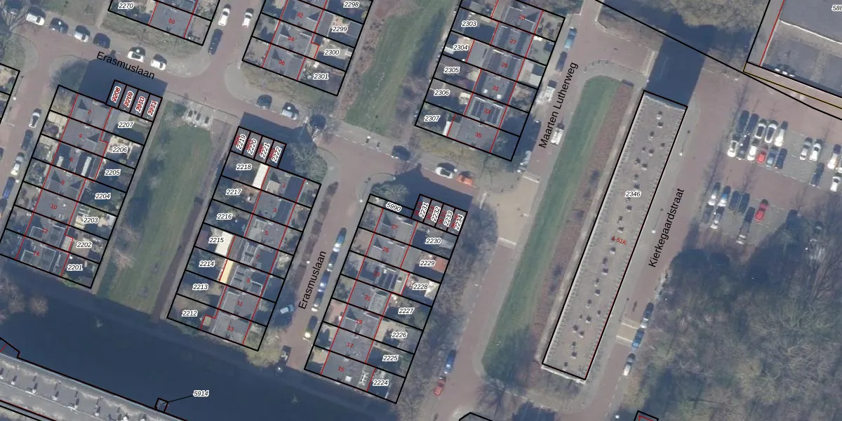 Het perceel waarop Erasmuslaan 96-13 staat heeft een oppervlakte van 19 m². Dit is een klein perceel. De perceeloppervlakte wordt geregistreerd door het Kadaster. Gedetailleerde informatie over de maten van dit perceel kunt u vinden in het rapport Kadastrale kaart met maatvoering van Erasmuslaan 96-13.