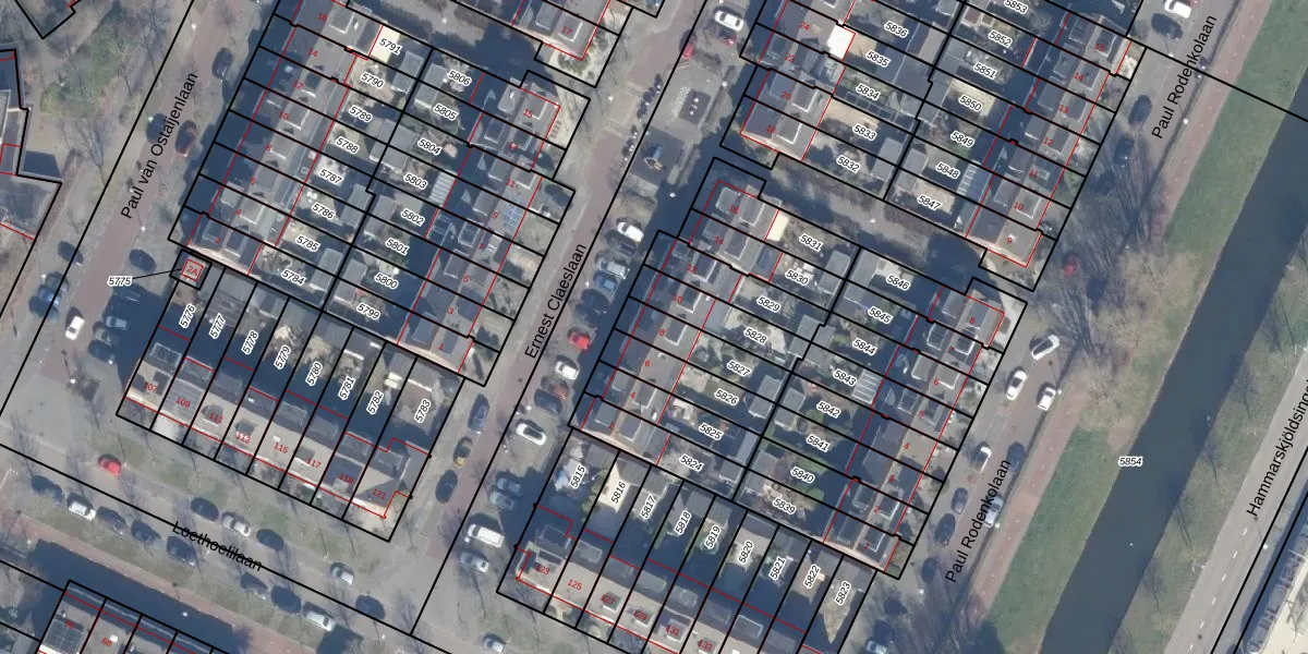 Het perceel waarop het adres ligt is ASV00-O-5827. De afkorting 'ASV00' staat voor kadastrale gemeente Amstelveen. Het perceel is kleiner dan gemiddeld in Amstelveen. Het perceel is 148 m² groot, terwijl het gemiddelde ligt op 1598,78 m². Het grootste perceel in de kadastrale gemeente is 1,78 km². Het kleinste perceel heeft een oppervlakte van 0 m². Op het perceel bevinden zich geen andere adressen. De laatste wijziging in het de Basisregistratie Kadaster (BRK) was op 28-11-1997.