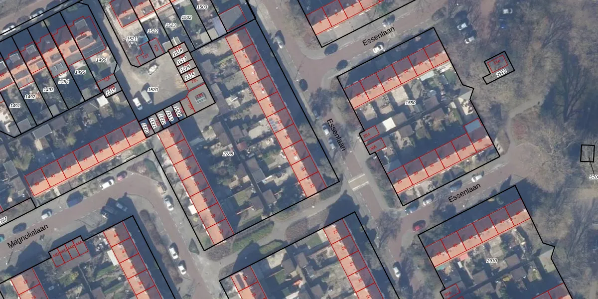Het perceel waarop Essenlaan 17 staat heeft een oppervlakte van 4255 m². Dit is een zeer groot perceel. De perceeloppervlakte wordt geregistreerd door het Kadaster. Gedetailleerde informatie over de maten van dit perceel kunt u vinden in het rapport Kadastrale kaart met maatvoering van Essenlaan 17.