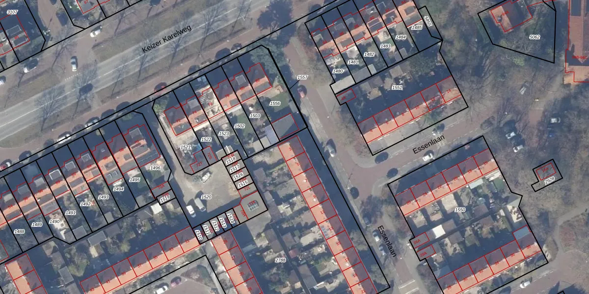 Het perceel waarop Essenlaan 3 staat heeft een oppervlakte van 4255 m². Dit is een zeer groot perceel. De perceeloppervlakte wordt geregistreerd door het Kadaster. Gedetailleerde informatie over de maten van dit perceel kunt u vinden in het rapport Kadastrale kaart met maatvoering van Essenlaan 3.