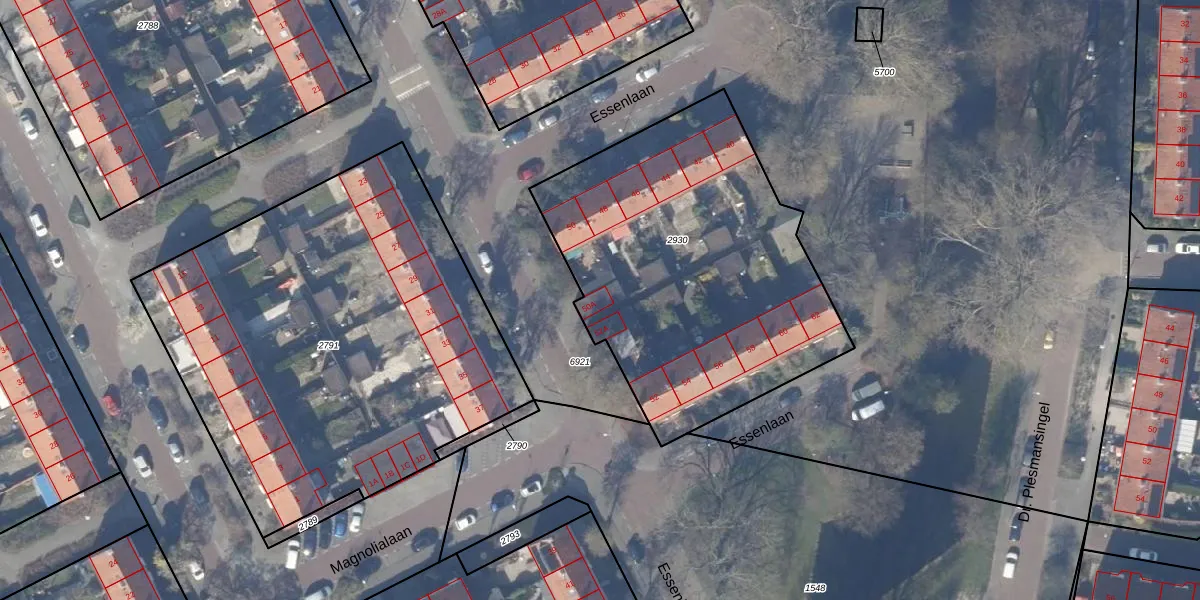 Het perceel waarop Essenlaan 50-A staat heeft een oppervlakte van 1785 m². Dit is een zeer groot perceel. De perceeloppervlakte wordt geregistreerd door het Kadaster. Gedetailleerde informatie over de maten van dit perceel kunt u vinden in het rapport Kadastrale kaart met maatvoering van Essenlaan 50-A.