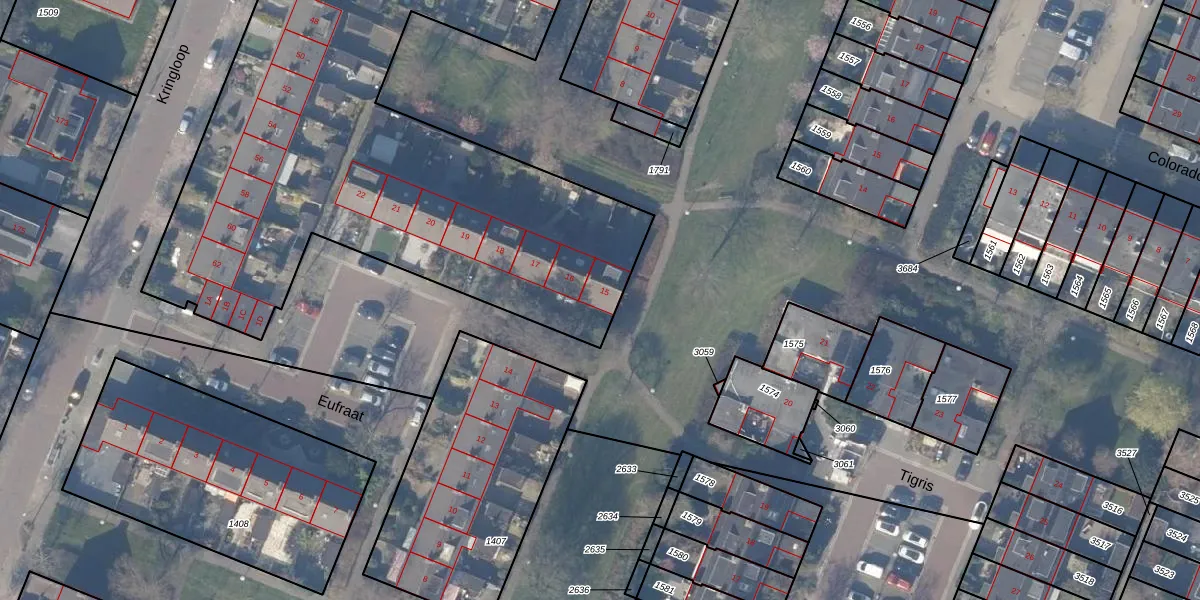 Het perceel waarop Eufraat 15 staat heeft een oppervlakte van 3692 m². Dit is een zeer groot perceel. De perceeloppervlakte wordt geregistreerd door het Kadaster. Gedetailleerde informatie over de maten van dit perceel kunt u vinden in het rapport Kadastrale kaart met maatvoering van Eufraat 15.