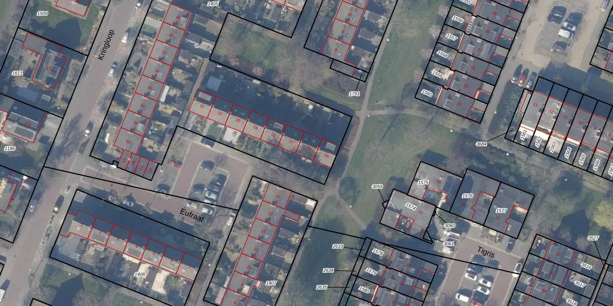 Het perceel waarop Eufraat 16 staat heeft een oppervlakte van 3692 m². Dit is een zeer groot perceel. De perceeloppervlakte wordt geregistreerd door het Kadaster. Gedetailleerde informatie over de maten van dit perceel kunt u vinden in het rapport Kadastrale kaart met maatvoering van Eufraat 16.