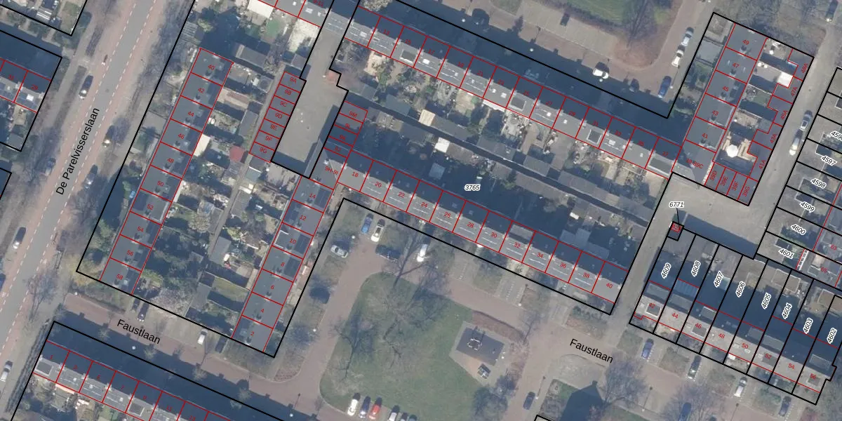 Het perceel waarop Faustlaan 24 staat heeft een oppervlakte van 8481 m². Dit is een zeer groot perceel. De perceeloppervlakte wordt geregistreerd door het Kadaster. Gedetailleerde informatie over de maten van dit perceel kunt u vinden in het rapport Kadastrale kaart met maatvoering van Faustlaan 24.