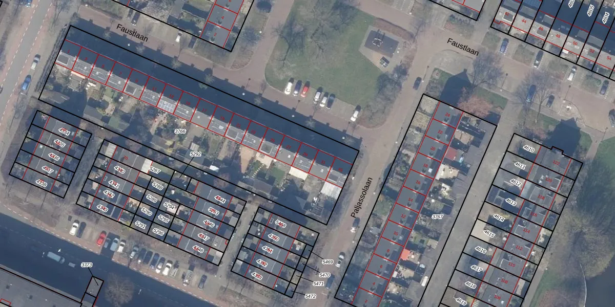 Het perceel waarop Faustlaan 29 staat heeft een oppervlakte van 2679 m². Dit is een zeer groot perceel. De perceeloppervlakte wordt geregistreerd door het Kadaster. Gedetailleerde informatie over de maten van dit perceel kunt u vinden in het rapport Kadastrale kaart met maatvoering van Faustlaan 29.