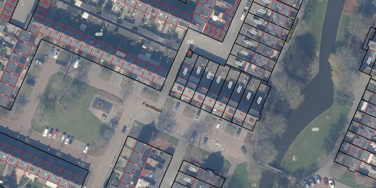 Faustlaan 44 is gelegen op kadastraal perceel ASV00I4608. Deze kadastrale aanduiding is uniek en wordt gebruikt door het Kadaster om eigendomsrechten en andere zakelijke rechten vast te leggen. Het perceel maakt onderdeel uit van de kadastrale gemeente Amstelveen.