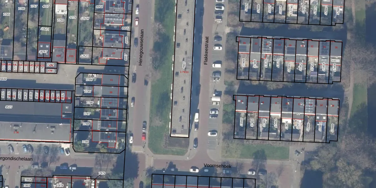 Flakkeestraat 23 is gelegen op kadastraal perceel ASV00H9907. Deze kadastrale aanduiding is uniek en wordt gebruikt door het Kadaster om eigendomsrechten en andere zakelijke rechten vast te leggen. Het perceel maakt onderdeel uit van de kadastrale gemeente Amstelveen.