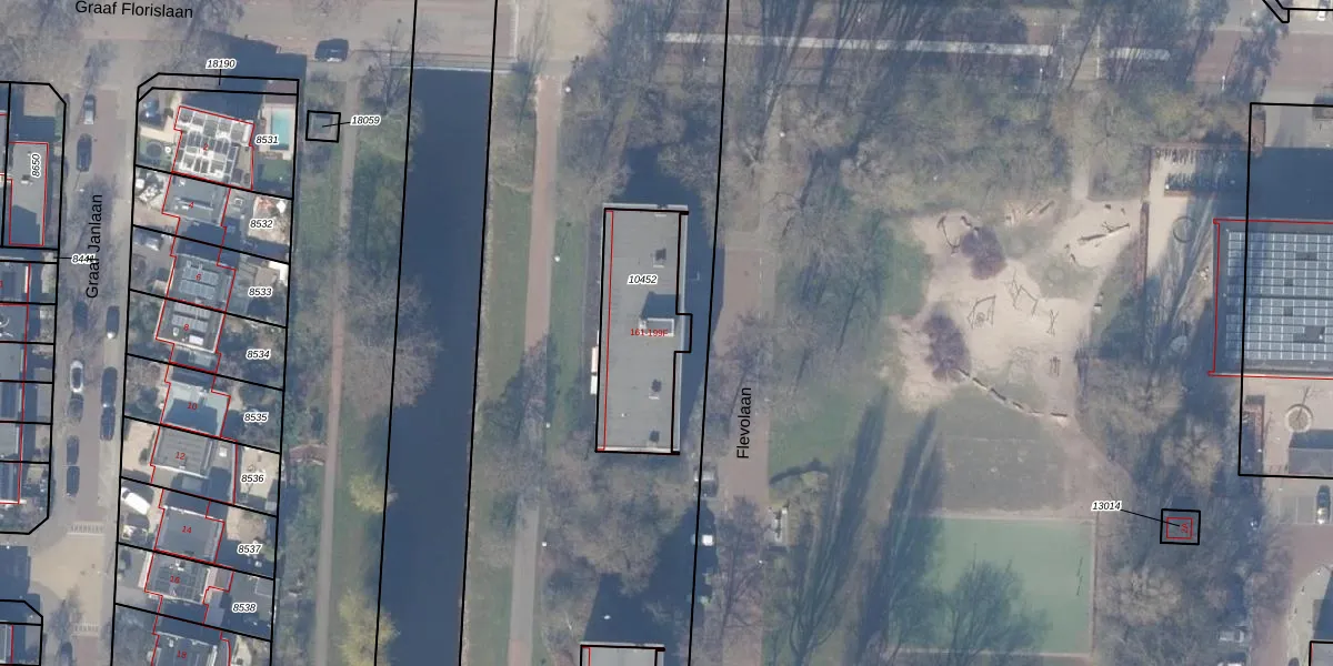 Het perceel waarop Flevolaan 191 staat heeft een oppervlakte van 425 m². Dit is een groot perceel. De perceeloppervlakte wordt geregistreerd door het Kadaster. Gedetailleerde informatie over de maten van dit perceel kunt u vinden in het rapport Kadastrale kaart met maatvoering van Flevolaan 191.