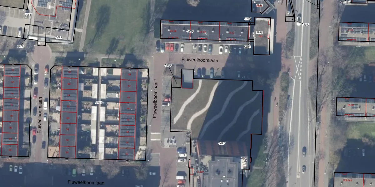Fluweelboomlaan 1-B is gelegen op kadastraal perceel ASV00M6027. Deze kadastrale aanduiding is uniek en wordt gebruikt door het Kadaster om eigendomsrechten en andere zakelijke rechten vast te leggen. Het perceel maakt onderdeel uit van de kadastrale gemeente Amstelveen.