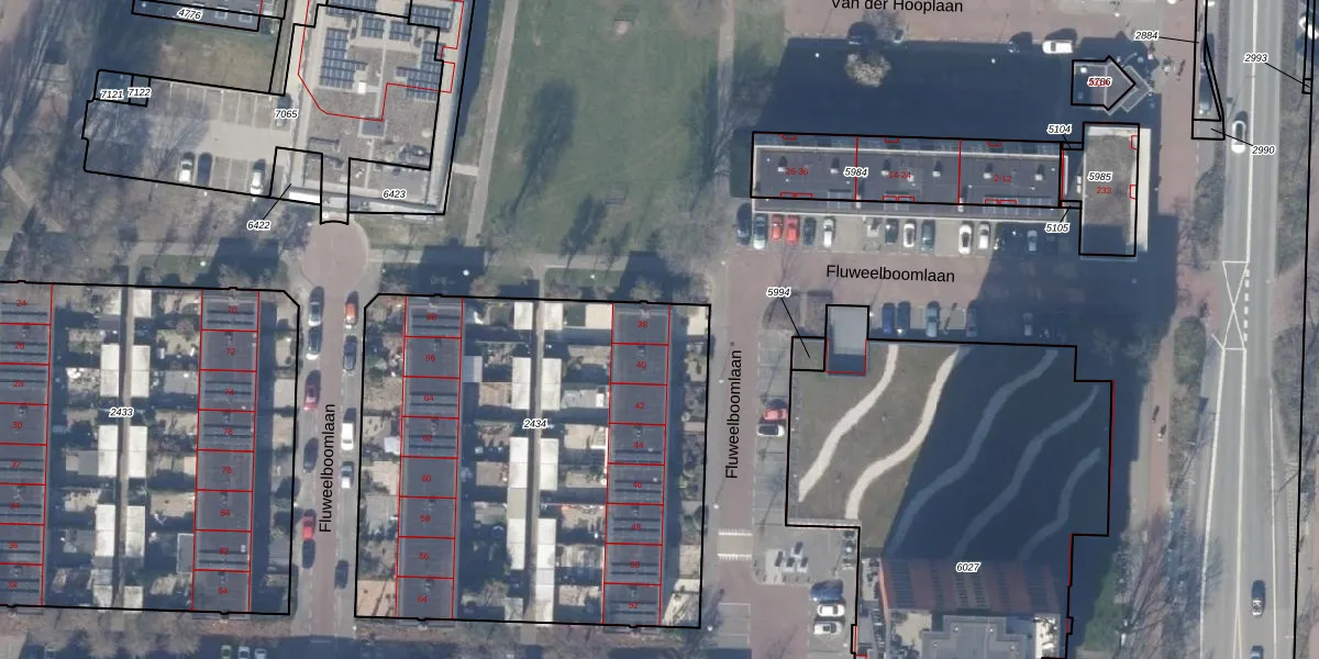 Het perceel waarop Fluweelboomlaan 38 staat heeft een oppervlakte van 2562 m². Dit is een zeer groot perceel. De perceeloppervlakte wordt geregistreerd door het Kadaster. Gedetailleerde informatie over de maten van dit perceel kunt u vinden in het rapport Kadastrale kaart met maatvoering van Fluweelboomlaan 38.