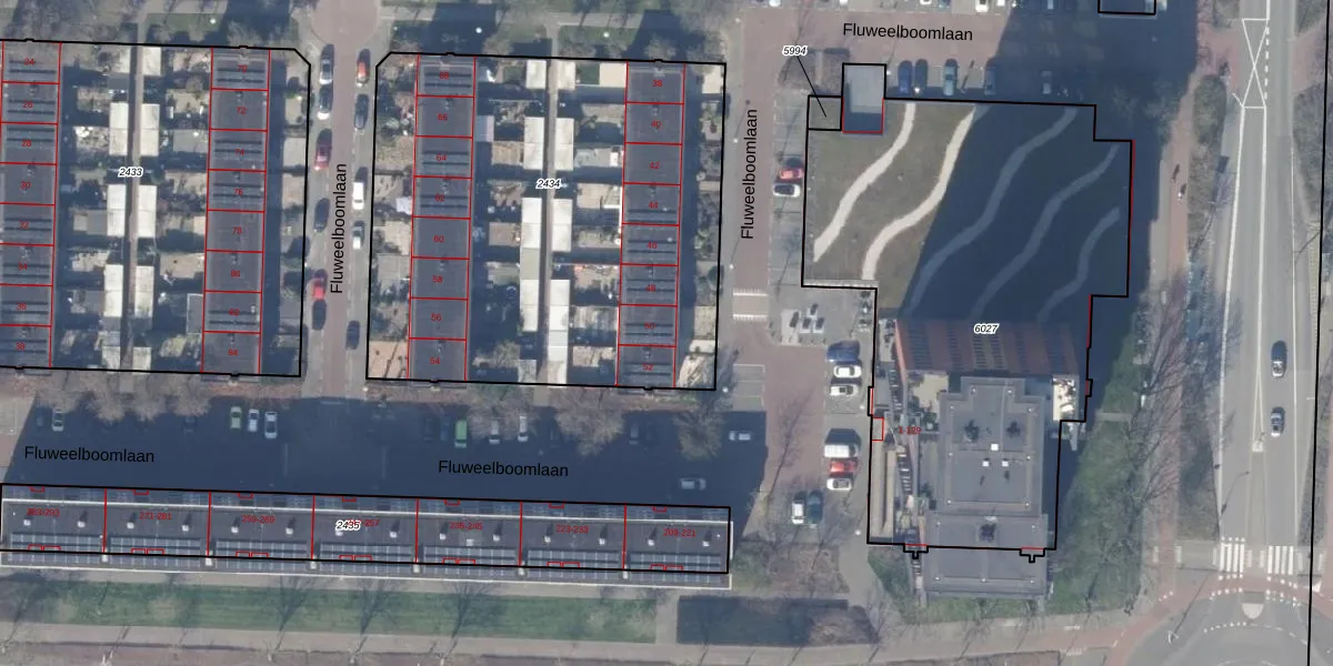 Het perceel waarop Fluweelboomlaan 50 staat heeft een oppervlakte van 2562 m². Dit is een zeer groot perceel. De perceeloppervlakte wordt geregistreerd door het Kadaster. Gedetailleerde informatie over de maten van dit perceel kunt u vinden in het rapport Kadastrale kaart met maatvoering van Fluweelboomlaan 50.