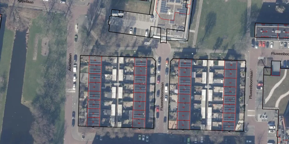 Het perceel waarop Fluweelboomlaan 72 staat heeft een oppervlakte van 2562 m². Dit is een zeer groot perceel. De perceeloppervlakte wordt geregistreerd door het Kadaster. Gedetailleerde informatie over de maten van dit perceel kunt u vinden in het rapport Kadastrale kaart met maatvoering van Fluweelboomlaan 72.