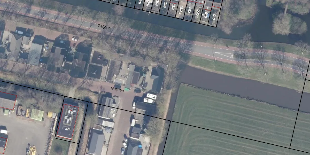 Het perceel waarop Galjoen 34 staat heeft een oppervlakte van 4,7 ha. Dit is een zeer groot perceel. De perceeloppervlakte wordt geregistreerd door het Kadaster. Gedetailleerde informatie over de maten van dit perceel kunt u vinden in het rapport Kadastrale kaart met maatvoering van Galjoen 34.