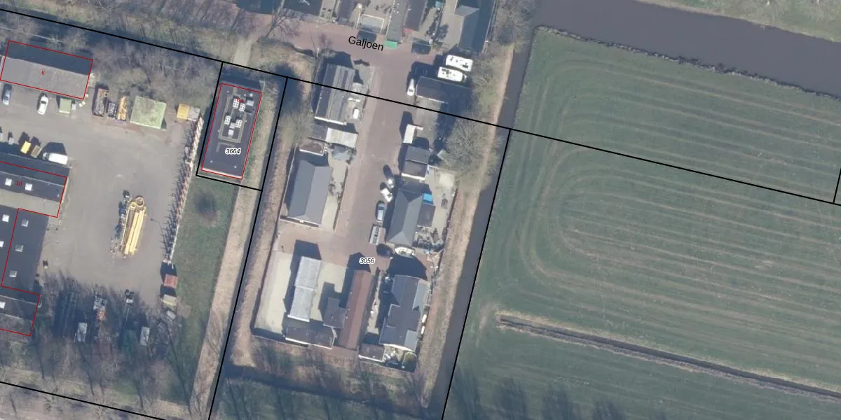 Het perceel waarop Galjoen 38 staat heeft een oppervlakte van 4719 m². Dit is een zeer groot perceel. De perceeloppervlakte wordt geregistreerd door het Kadaster. Gedetailleerde informatie over de maten van dit perceel kunt u vinden in het rapport Kadastrale kaart met maatvoering van Galjoen 38.
