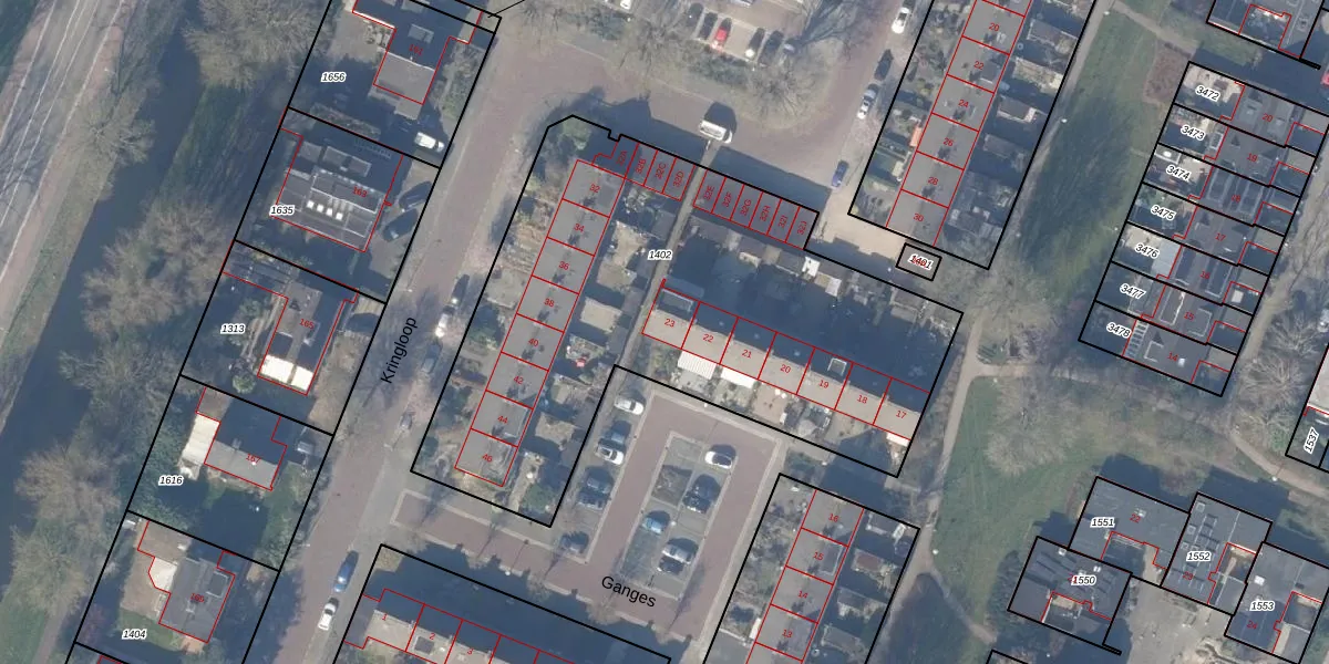 Het perceel waarop Ganges 23 staat heeft een oppervlakte van 2668 m². Dit is een zeer groot perceel. De perceeloppervlakte wordt geregistreerd door het Kadaster. Gedetailleerde informatie over de maten van dit perceel kunt u vinden in het rapport Kadastrale kaart met maatvoering van Ganges 23.