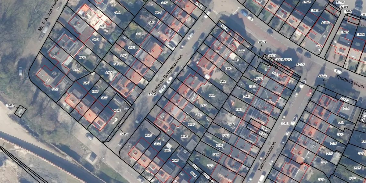 Goeman Borgesiuslaan 10 is gelegen op kadastraal perceel ASV00H6492. Deze kadastrale aanduiding is uniek en wordt gebruikt door het Kadaster om eigendomsrechten en andere zakelijke rechten vast te leggen. Het perceel maakt onderdeel uit van de kadastrale gemeente Amstelveen.