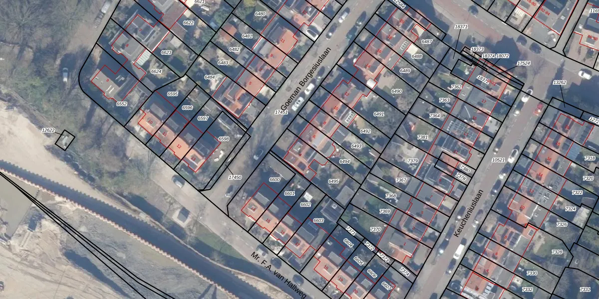 Goeman Borgesiuslaan 4 is gelegen op kadastraal perceel ASV00H6495. Deze kadastrale aanduiding is uniek en wordt gebruikt door het Kadaster om eigendomsrechten en andere zakelijke rechten vast te leggen. Het perceel maakt onderdeel uit van de kadastrale gemeente Amstelveen.
