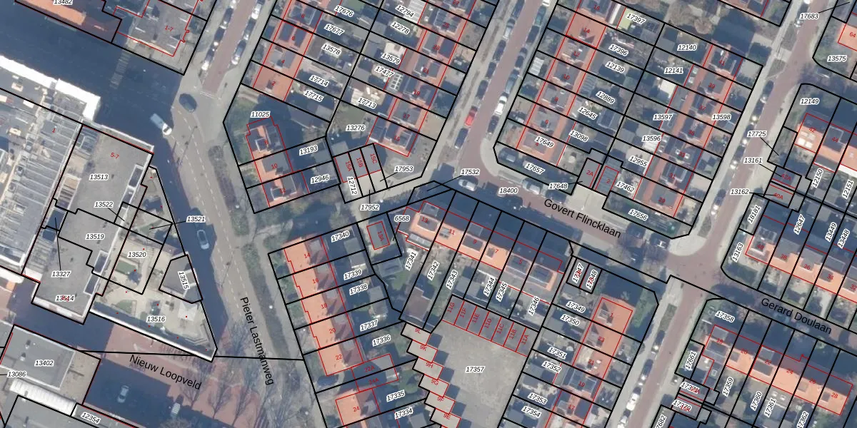 Gebruik de zoekbalk of klik op een perceel voor informatie over de adressen binnen dit perceel.