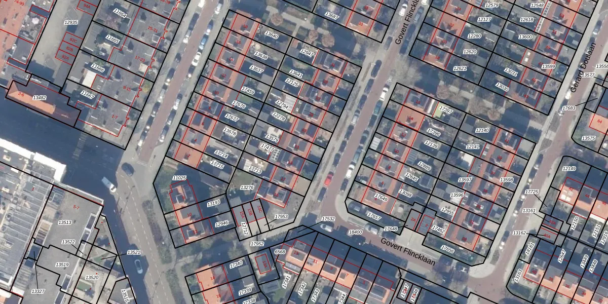 Het perceel waarop Govert Flincklaan 21 staat heeft een oppervlakte van 141 m². Dit is een middelgroot perceel. De perceeloppervlakte wordt geregistreerd door het Kadaster. Gedetailleerde informatie over de maten van dit perceel kunt u vinden in het rapport Kadastrale kaart met maatvoering van Govert Flincklaan 21.