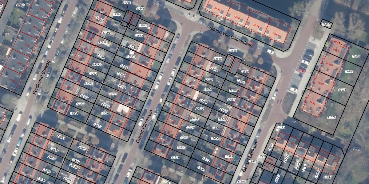 Gebruik de zoekbalk of klik op een perceel voor informatie over de adressen binnen dit perceel.