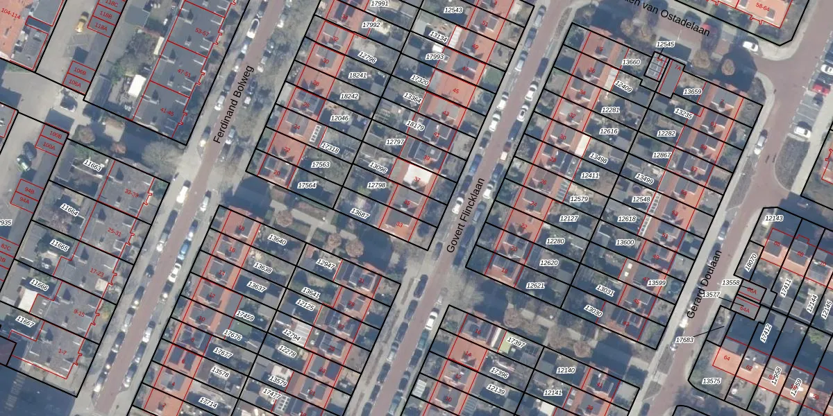 Gebruik de zoekbalk of klik op een perceel voor informatie over de adressen binnen dit perceel.