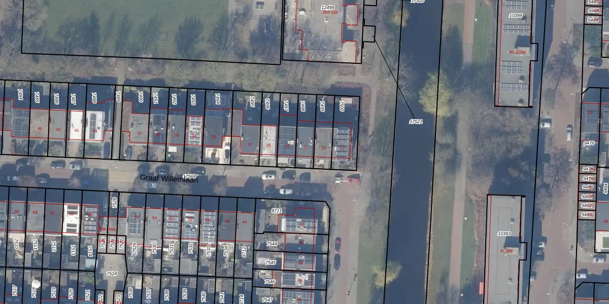 Graaf Willemlaan 21 is gelegen op kadastraal perceel ASV00H7498. Deze kadastrale aanduiding is uniek en wordt gebruikt door het Kadaster om eigendomsrechten en andere zakelijke rechten vast te leggen. Het perceel maakt onderdeel uit van de kadastrale gemeente Amstelveen.