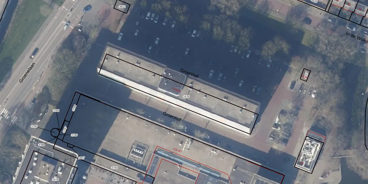 Het perceel waarop Groenhof 89 staat heeft een oppervlakte van 1037 m². Dit is een zeer groot perceel. De perceeloppervlakte wordt geregistreerd door het Kadaster. Gedetailleerde informatie over de maten van dit perceel kunt u vinden in het rapport Kadastrale kaart met maatvoering van Groenhof 89.