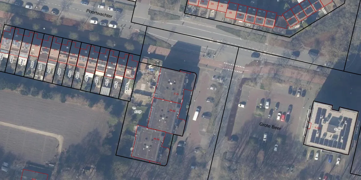 Grote Beer 16 is gelegen op kadastraal perceel ASV00M5774. Deze kadastrale aanduiding is uniek en wordt gebruikt door het Kadaster om eigendomsrechten en andere zakelijke rechten vast te leggen. Het perceel maakt onderdeel uit van de kadastrale gemeente Amstelveen.