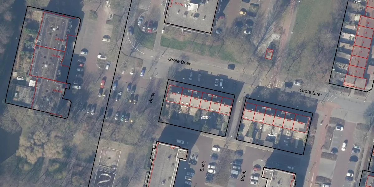 Grote Beer 180 is gelegen op kadastraal perceel ASV00M5869. Deze kadastrale aanduiding is uniek en wordt gebruikt door het Kadaster om eigendomsrechten en andere zakelijke rechten vast te leggen. Het perceel maakt onderdeel uit van de kadastrale gemeente Amstelveen.