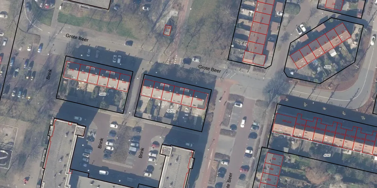 Grote Beer 198 is gelegen op kadastraal perceel ASV00M5870. Deze kadastrale aanduiding is uniek en wordt gebruikt door het Kadaster om eigendomsrechten en andere zakelijke rechten vast te leggen. Het perceel maakt onderdeel uit van de kadastrale gemeente Amstelveen.