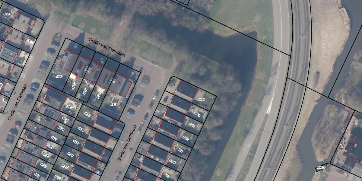 Guido van Dethlaan 29 is gelegen op kadastraal perceel ASV00O4860. Deze kadastrale aanduiding is uniek en wordt gebruikt door het Kadaster om eigendomsrechten en andere zakelijke rechten vast te leggen. Het perceel maakt onderdeel uit van de kadastrale gemeente Amstelveen.