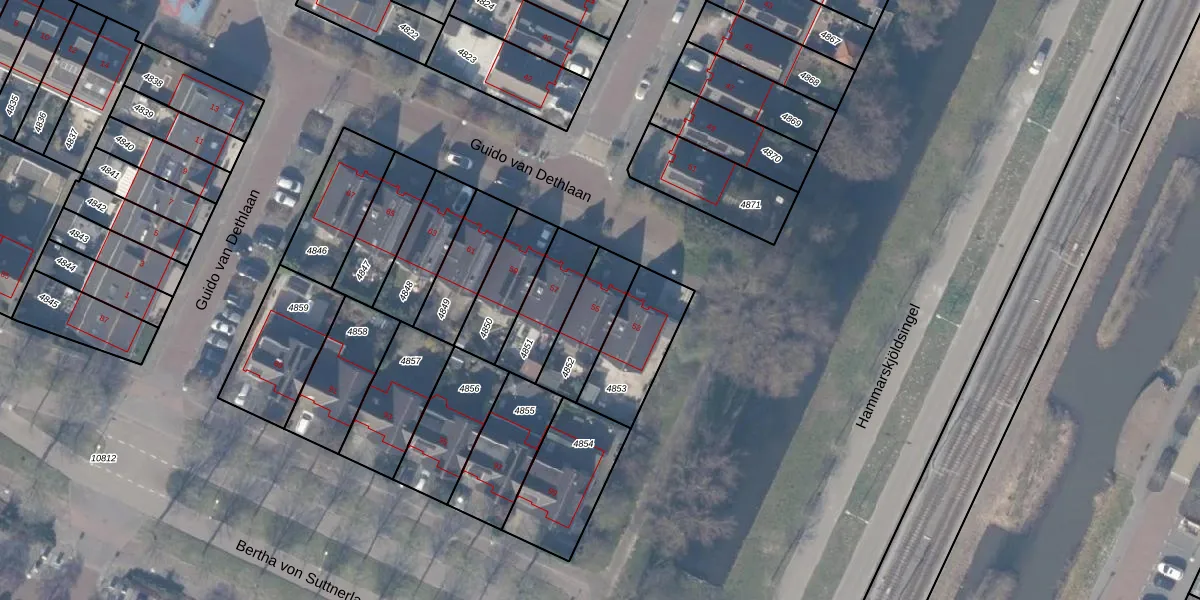 Guido van Dethlaan 55 is gelegen op kadastraal perceel ASV00O4852. Deze kadastrale aanduiding is uniek en wordt gebruikt door het Kadaster om eigendomsrechten en andere zakelijke rechten vast te leggen. Het perceel maakt onderdeel uit van de kadastrale gemeente Amstelveen.