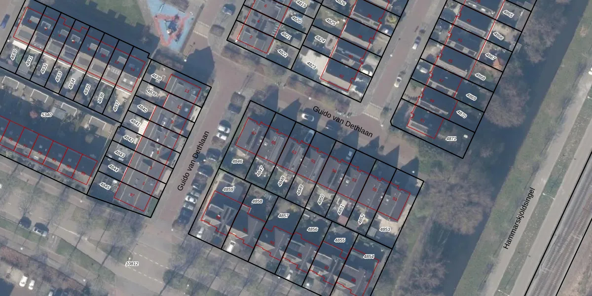 Het perceel waarop Guido van Dethlaan 63 staat heeft een oppervlakte van 190 m². Dit is een middelgroot perceel. De perceeloppervlakte wordt geregistreerd door het Kadaster. Gedetailleerde informatie over de maten van dit perceel kunt u vinden in het rapport Kadastrale kaart met maatvoering van Guido van Dethlaan 63.