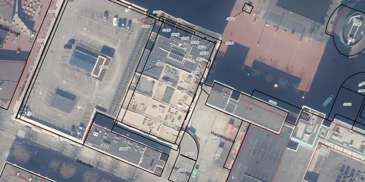 Het perceel waarop Handelsweg 39-17 staat heeft een oppervlakte van 1880 m². Dit is een zeer groot perceel. De perceeloppervlakte wordt geregistreerd door het Kadaster. Gedetailleerde informatie over de maten van dit perceel kunt u vinden in het rapport Kadastrale kaart met maatvoering van Handelsweg 39-17.