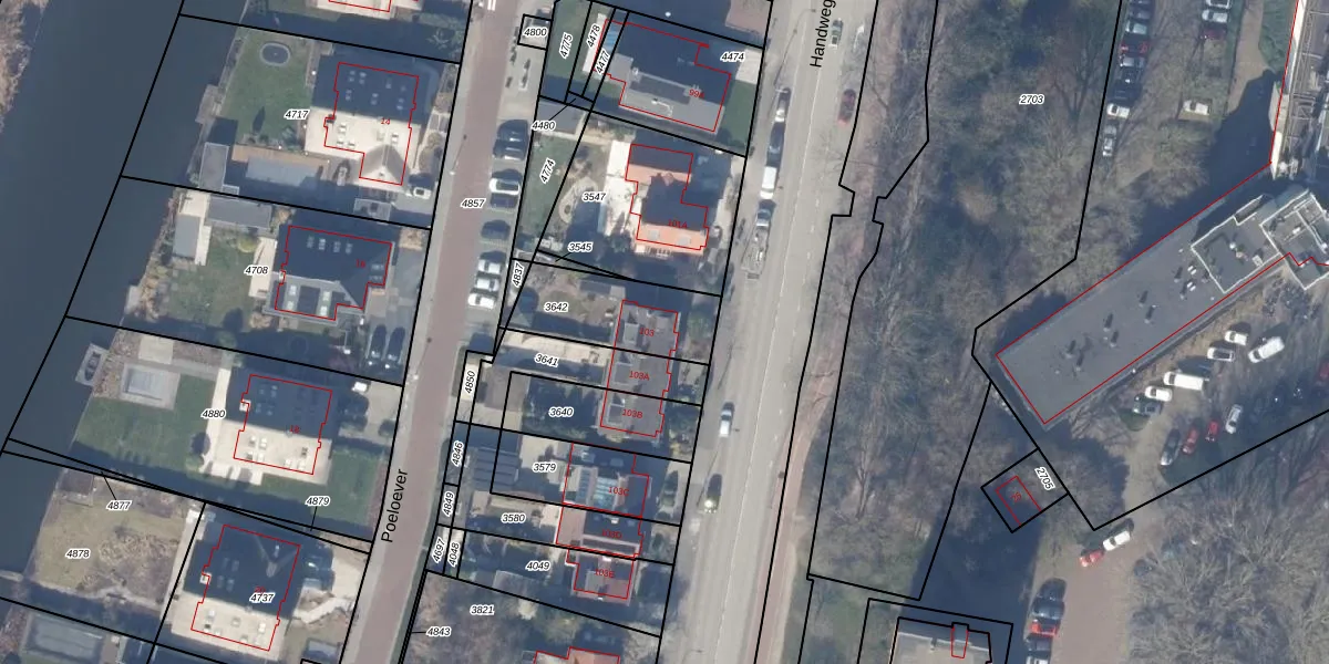 Het perceel waarop Handweg 103 staat heeft een oppervlakte van 317 m². Dit is een groot perceel. De perceeloppervlakte wordt geregistreerd door het Kadaster. Gedetailleerde informatie over de maten van dit perceel kunt u vinden in het rapport Kadastrale kaart met maatvoering van Handweg 103.