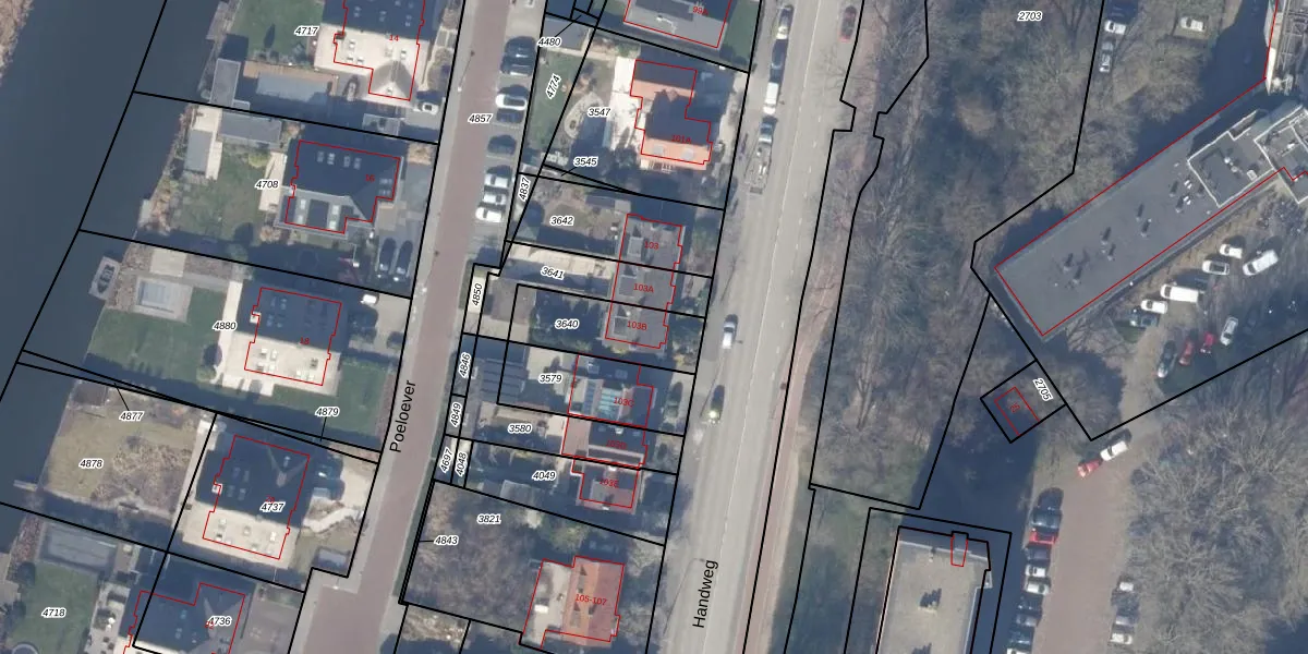 Gebruik de zoekbalk of klik op een perceel voor informatie over de adressen binnen dit perceel.