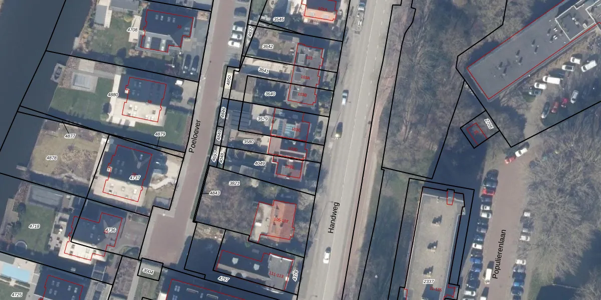 Gebruik de zoekbalk of klik op een perceel voor informatie over de adressen binnen dit perceel.