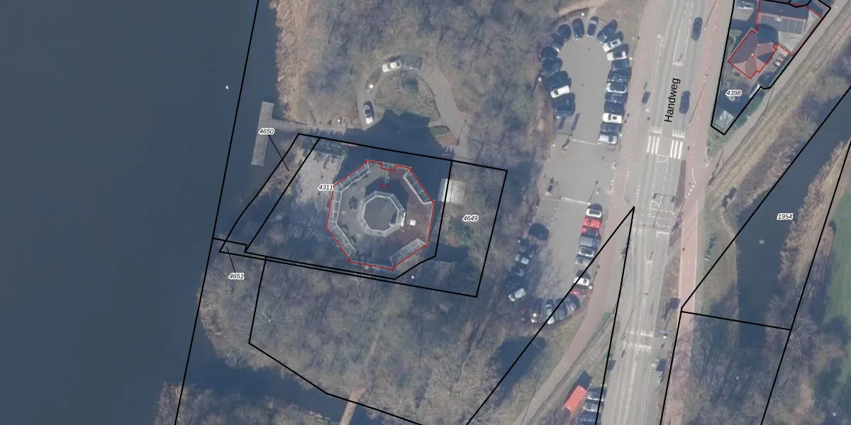 Het perceel waarop Handweg 3 staat heeft een oppervlakte van 1080 m². Dit is een zeer groot perceel. De perceeloppervlakte wordt geregistreerd door het Kadaster. Gedetailleerde informatie over de maten van dit perceel kunt u vinden in het rapport Kadastrale kaart met maatvoering van Handweg 3.