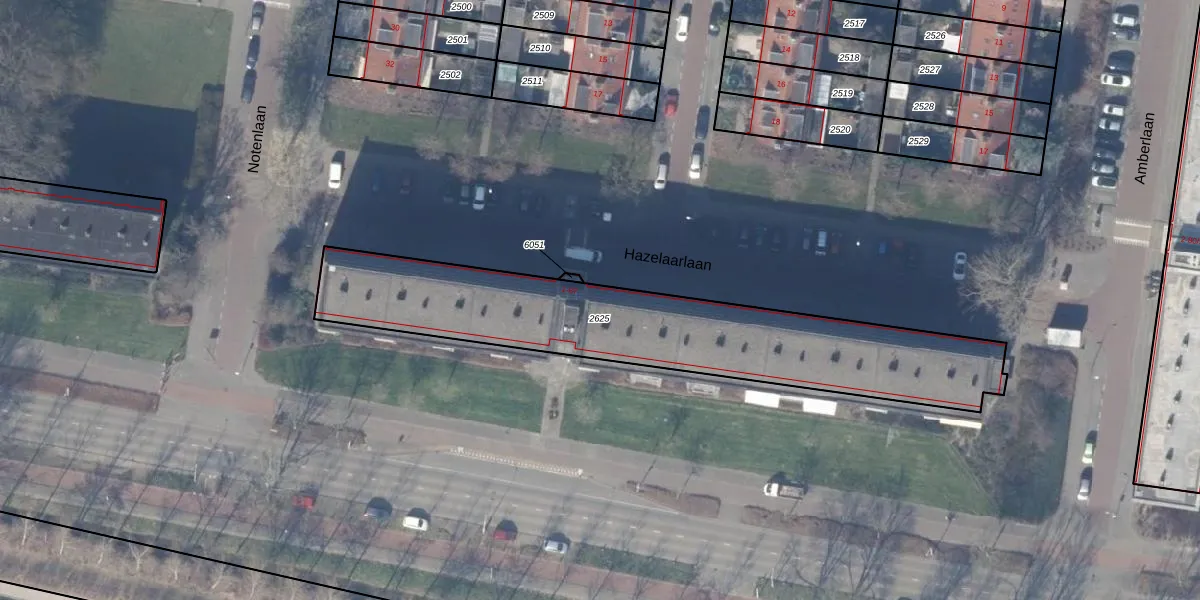 Hazelaarlaan 87-09 is gelegen op kadastraal perceel ASV00M2625. Deze kadastrale aanduiding is uniek en wordt gebruikt door het Kadaster om eigendomsrechten en andere zakelijke rechten vast te leggen. Het perceel maakt onderdeel uit van de kadastrale gemeente Amstelveen.