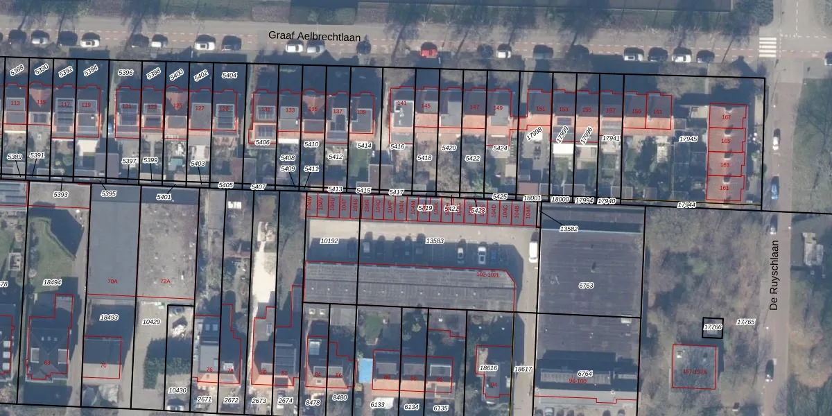 Het perceel waarop Heemraadschapslaan 104-M staat heeft een oppervlakte van 1166 m². Dit is een zeer groot perceel. De perceeloppervlakte wordt geregistreerd door het Kadaster. Gedetailleerde informatie over de maten van dit perceel kunt u vinden in het rapport Kadastrale kaart met maatvoering van Heemraadschapslaan 104-M.