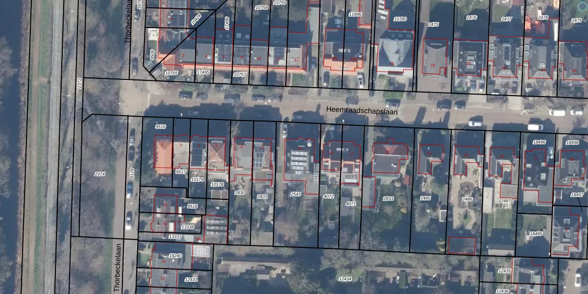 Gebruik de zoekbalk of klik op een perceel voor informatie over de adressen binnen dit perceel.