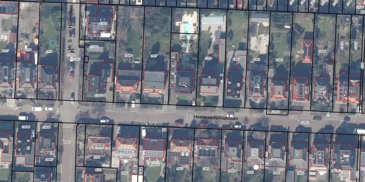 Het perceel waarop Heemraadschapslaan 36 staat heeft een oppervlakte van 590 m². Dit is een groot perceel. De perceeloppervlakte wordt geregistreerd door het Kadaster. Gedetailleerde informatie over de maten van dit perceel kunt u vinden in het rapport Kadastrale kaart met maatvoering van Heemraadschapslaan 36.