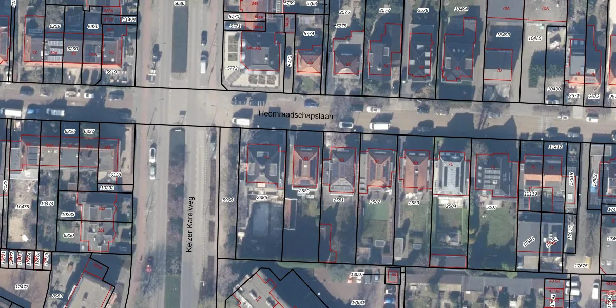 Gebruik de zoekbalk of klik op een perceel voor informatie over de adressen binnen dit perceel.