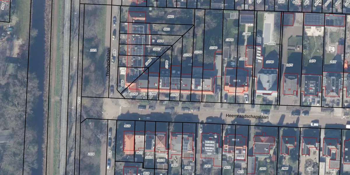 Gebruik de zoekbalk of klik op een perceel voor informatie over de adressen binnen dit perceel.